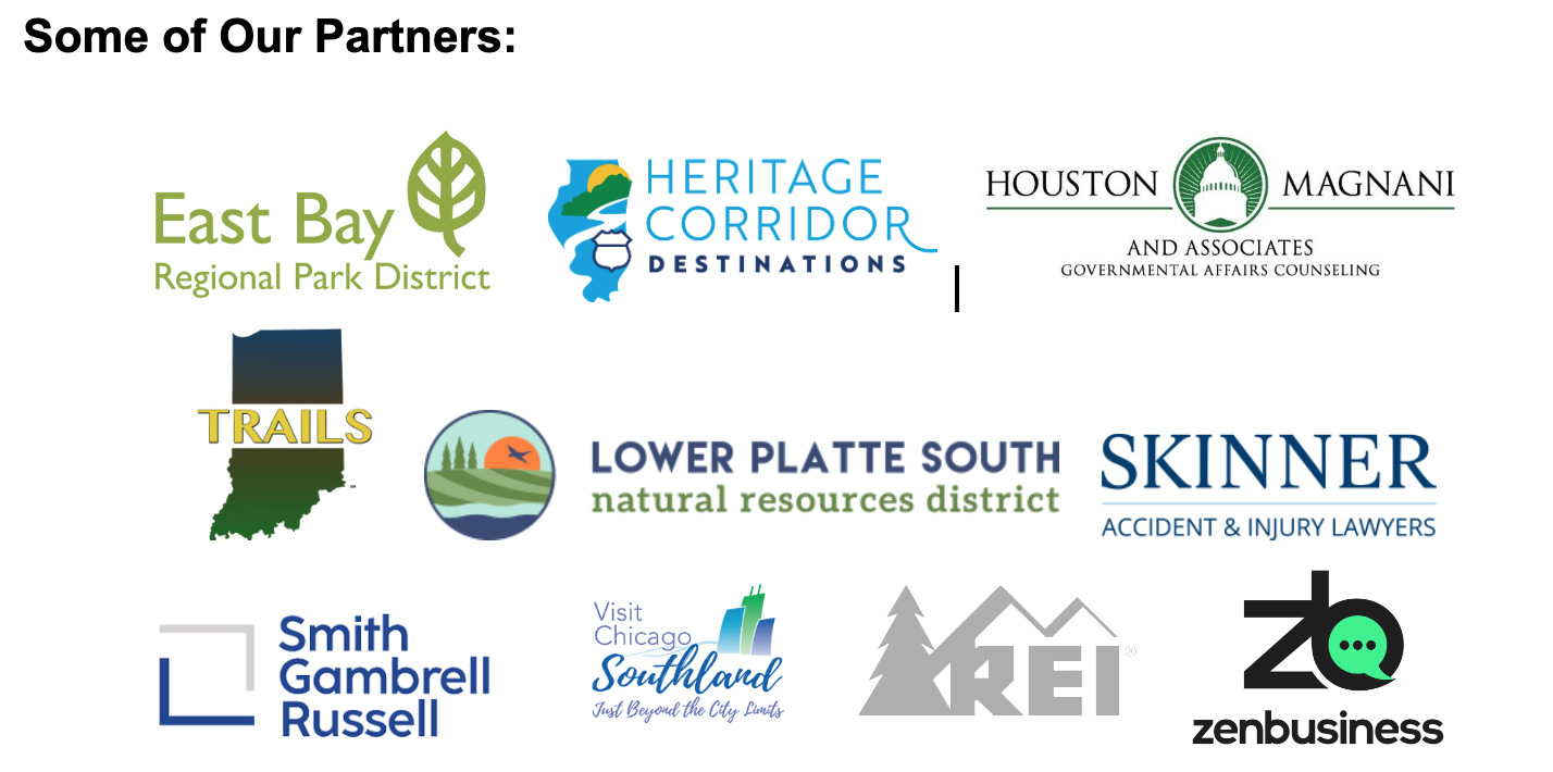 National Sponsors ($1,000-$10,000): prominent promotion on the Society website, including a banner ad on a premium page (for donors of $5,000 or greater), 1/8-page advertisement or acknowledgment in three issues of Discover America newsletter, listing in online directory of services along the trail, American Discovery Trail Business Partner sign, opportunity to provide a discount to ADTS members, multiple subscriptions to our newsletter, and additional recognition, such as at the ADT Society Annual Meeting.